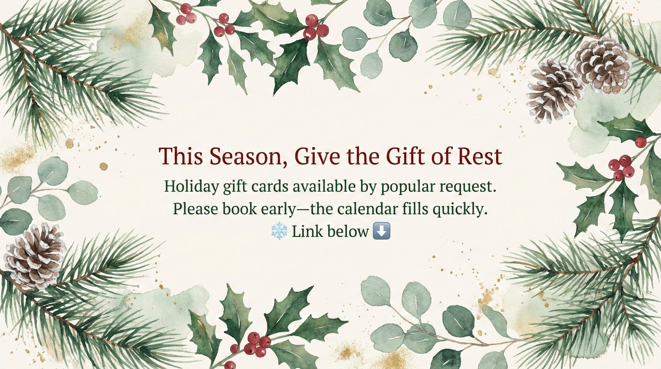 All gift cards are valid for 12 months from the date of purchase. Expired gift cards may be honored under extenuating circumstances at my discretion. They hold no refundable cash value and are redeemable for services only.